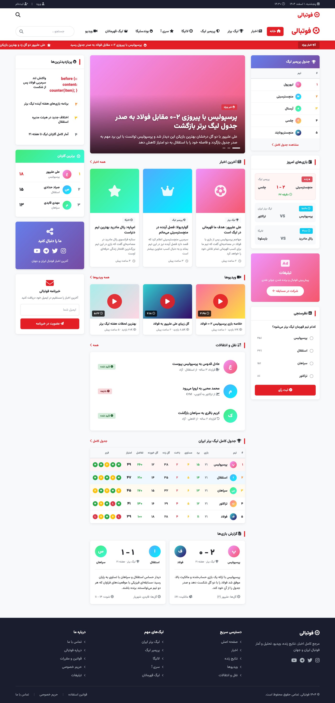 قالب فوتبالی - حرفه‌ای‌ترین قالب خبری فوتبال به زبان فارسی