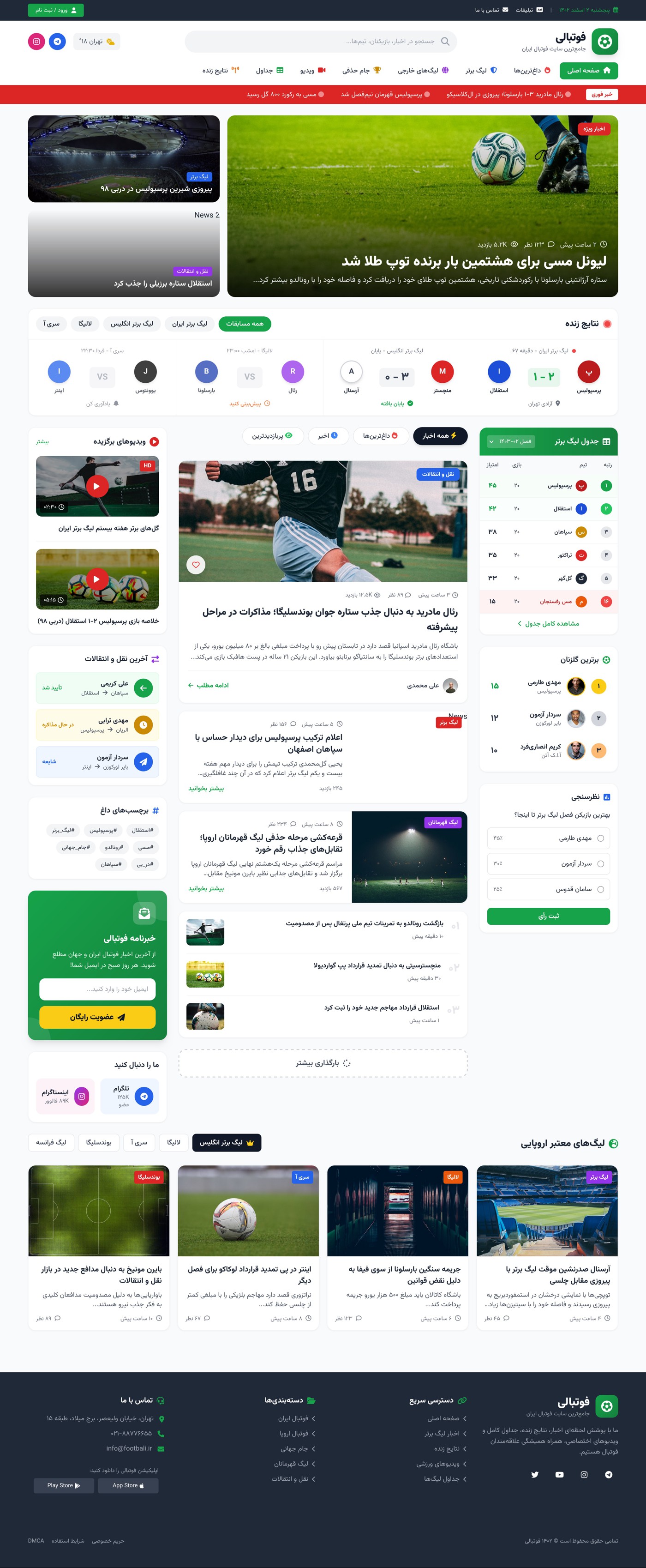 قالب فوتبالی یک قالب HTML,Wordpress,Joomla آماده و کاملاً ریسپانسیو است که به‌طور اختصاصی برای سایت‌های خبری حوزه فوتبال و ورزش طراحی شده است. این قالب با ظاهری مدرن، ساختاری حرفه‌ای و پشتیبانی کامل از زبان فارسی و چیدمان RTL، بهترین انتخاب برای راه‌اندازی یک پایگاه خبری ورزشی است.